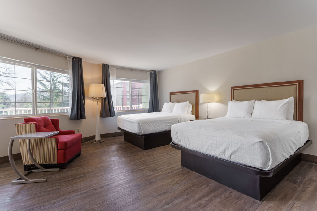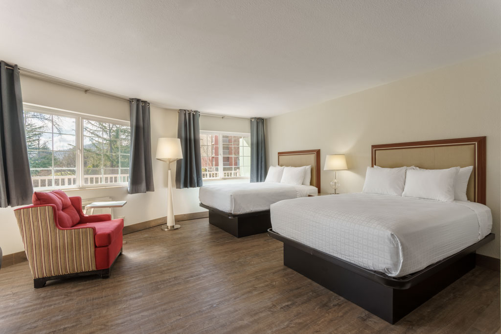 Conveniently located in Roseburg, Oregon, just a short walk from downtown Roseburg. Riverfront Inn is a pet and family friendly hotel that offers all non-smoking rooms, continental breakfast, and standard amenities that many hotels charge extra for. We are located on the South Umpqua River. Enjoy our beautiful riverfront gardens and views.